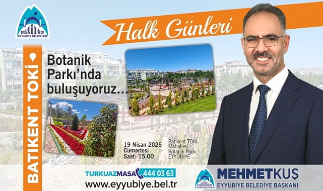 Eyyübiye Belediye Başkanı Mehmet Kuş, 19 Nisan’da Batıkent TOKİ Mahallesi’ndeki Botanik Parkı’nda halkla buluşarak yapılan yatırımlar ve gelecekteki projeler hakkında görüş alışverişinde bulunacak.