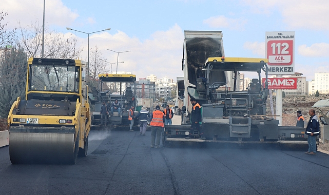 Şanlıurfa Büyükşehir Belediyesi Fen İşleri Daire Başkanlığı ekipleri, Eyyüp Cenap Gülpınar Bulvarı olarak da bilinen bu yol üzerinde, altyapı çalışmalarının tamamlanmasının ardından asfalt serimine geçti.