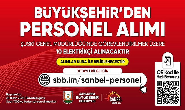Şanlıurfa Büyükşehir Belediyesi, kamuoyuna açık ve şeffaf bir şekilde gerçekleştirdiği personel alımıyla dikkat çekiyor. Belediye tarafından yapılan açıklamaya göre, ŞANBEL ENERJİ A.Ş. bünyesinde, ŞUSKİ Genel Müdürlüğü'nde istihdam edilmek üzere 10 elektrikçi alınacak.