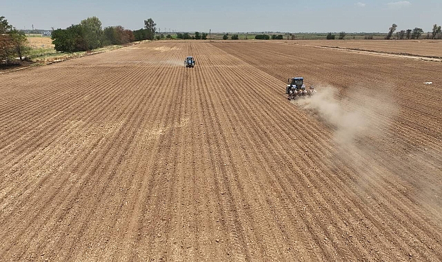 ŞANLIURFA- Şanlıurfa Büyükşehir Belediyesi Tarımsal Hizmetler Daire Başkanlığı Buğday hasadının ardından 250 dekarlık alanda sıcak iklim tahıllarından olan mısır çeşidinin ekimine başladı.Şanlıurfa Büyükşehir Belediyesi, tarımın bereketli toprağı Harran-Akçakale Ovasında bu yıl da Mısır ekimi yaparak verimli bir hasat dönemi geçirmeyi hedefliyor. Ekimi yapılan ürünün kalitesi hasat döneminde yapılacak verim analizi ile tespit edilecek.Ziraat mühendislerinin gözetiminde ekimi yapılan mısır tohumları Şanlıurfa Büyükşehir Belediyesi araçlarıyla yapılırken ekimde verimi artıran teknolojilerden biri olan lazer teknolojisi de kullanıldı.