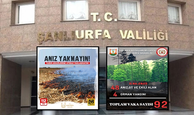 Öte yandan Şanlıurfa Büyükşehir Belediyesi İtfaiye Daire Başkanlığı, yangınlara ilişkin son 24 saatin verilerini paylaştı. Yapılan açıklamaya göre ekipler, 48 anız, ot ve ekili alan yangını, ayrıca 4 orman yangını olmak üzere toplam 92 farklı yangın olayına müdahale etti.