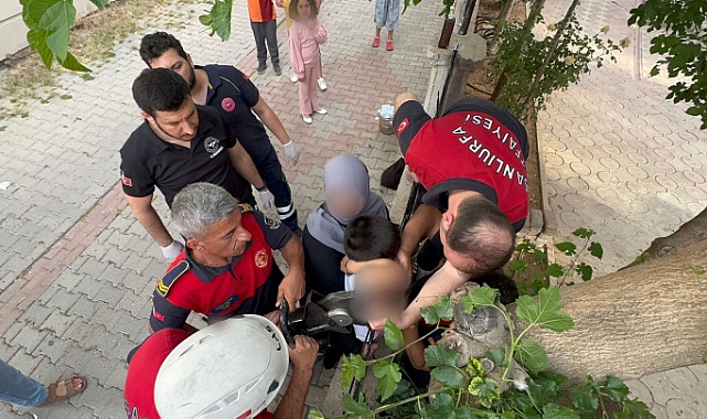Şanlıurfa’nın Karaköprü ilçesinde demir korkuluğa kolu saplanan çocuk, itfaiye ekiplerinin müdahalesiyle kurtarıldı, sağlık ekiplerine teslim edildi.