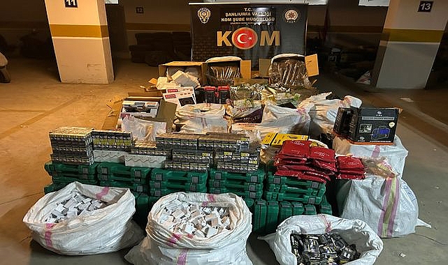 Şanlıurfa'nın Siverek ilçesinde yapılan denetimlerde, kaçak ürünler arasında kayıtsız tütün, çay, sigara, şarj adaptörleri ve kozmetik ürünler bulundu.