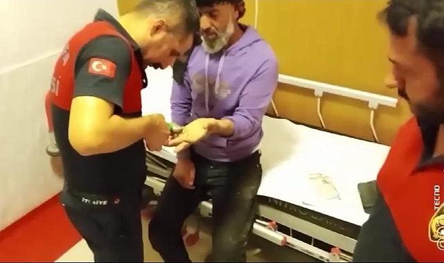 Parmağına yüzük sıkışan vatandaşın imdadına itfaiye yetişti. İtfaiye ekipleri sıkışan yüzüğü özel aletlerle çıkardı.